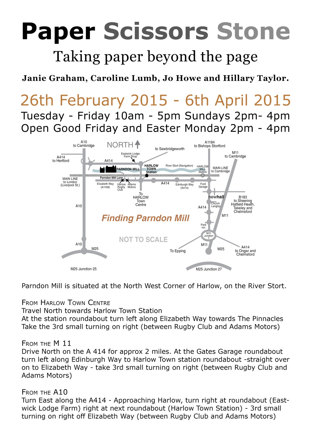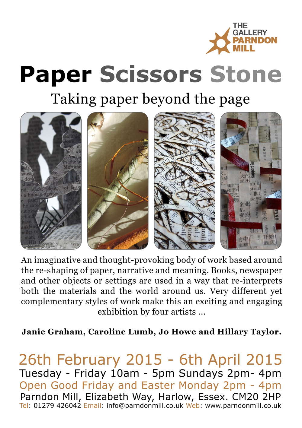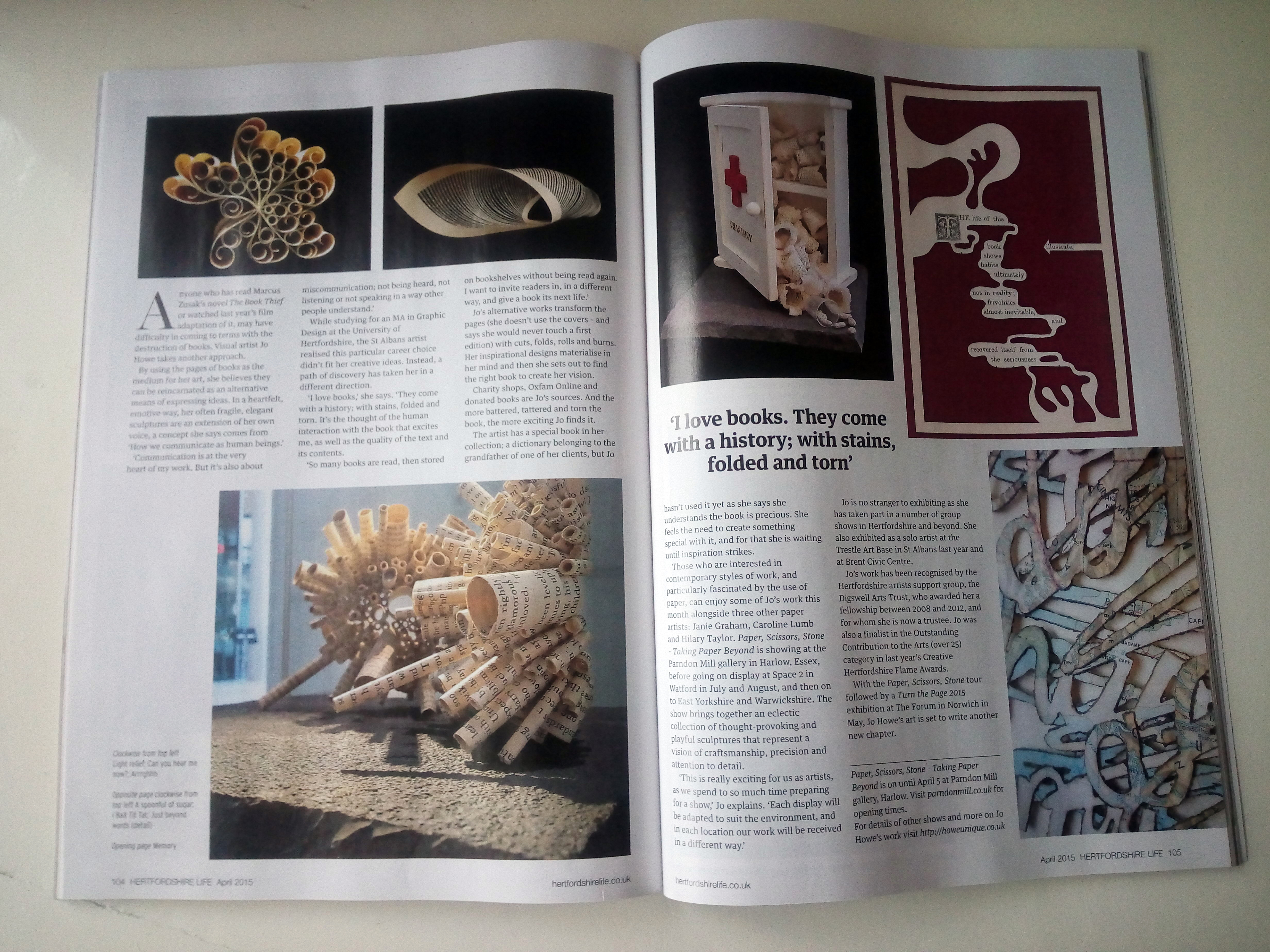 Also highlights the current show ‘Paper, Scissors, Stone – Taking paper beyond the page’ at the beautiful setting of Parndon Mill gallery, Harlow.